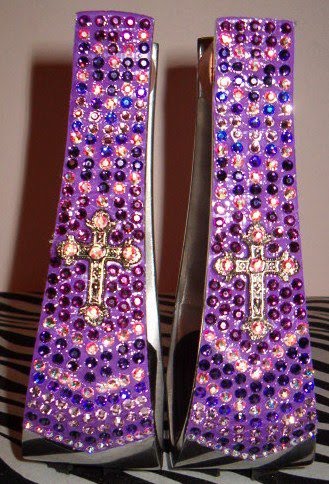 Christine creates custom patterns with swarovski crystals. You can add conchos and other pieces as well. Originally Christine sold a few pieces of tack she made at some local rodeos & barrel races & started taking special orders. One day a friend requested a pair of special stirrups with lots of sparkle.
