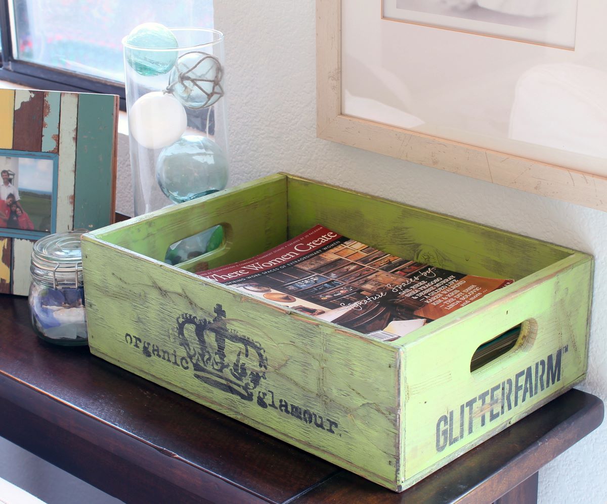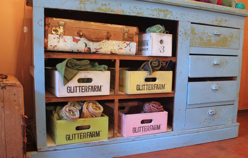 Everyone knows (or should know) that I have a weakness for glitter. And of course my fondness for home decor & decorating has been growing. Recently I discovered Glitterfarm thanks to Pinterest & I just had to share these crates. You just might want to check them out as well!