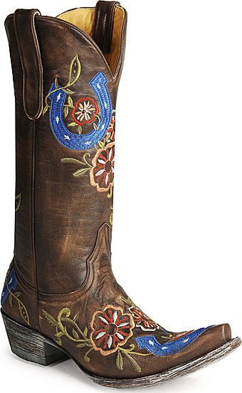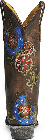 I love these boots, I have always thought they were pretty & I just realized today that I never posted them. These Old Gringo women’s Luckenbach western boots are from Sheplers. Obviously it was the horseshoe that caught my eye. Their royal blue stitching surrounded by red & tan flowers is stunning.